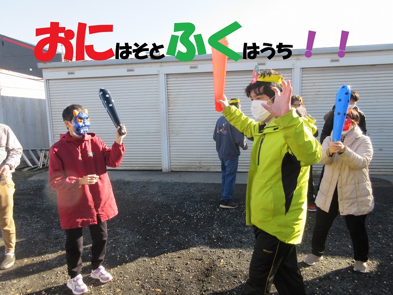 午年の利用者さんは、4名いらっしゃいます。年男・年女の方々には、「福男・福女」として、豆まきに参加していただきました。皆様にたくさんの幸がありますように。 ![]() |
