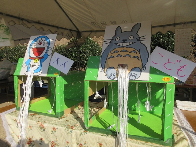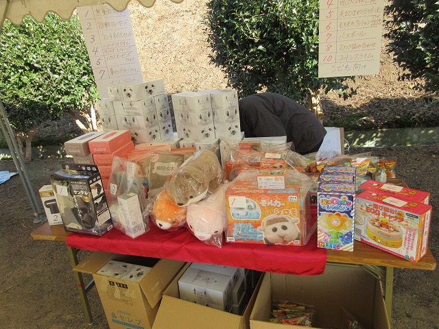 当園の企画は、恒例の「何が当たるかな?」千本くじ!1回100円で、大人向けと子ども向けに分けられた豪華賞品が当たるくじを用意しました。お値段以上の賞品が必ず当たるようになっており、お目当ての賞品をゲットしようと何度も挑戦してくださる方の熱気で、ブースは終始大賑わいでした! ![]() |