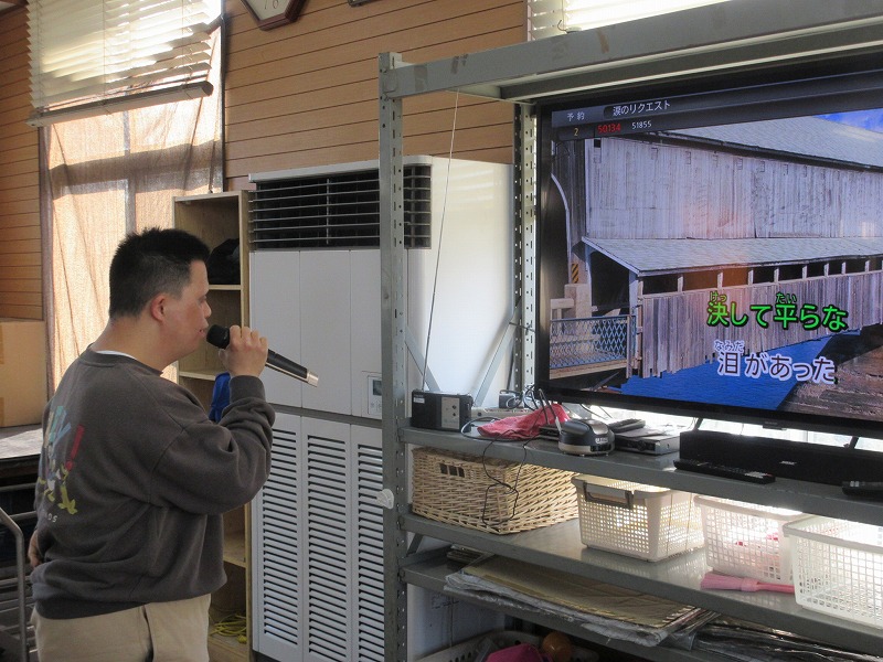 2月のお楽しみ会は、みなさん楽しみにされていたカラオケ大会でした。じっくり曲選びをする人、時間をかけずにすぐに決める人とさまざまでしたが、ミニマラカスやミニタンバリンで大盛り上がりの時間でした。 ![]() |