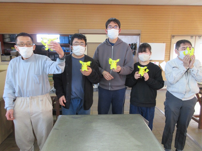 カラオケに参加しない利用者さんのために、工作を準備しました。事前に希望者を募り、カラオケをBGMに集中して取り組まれていました。『とことこ』と歩く可愛い作品ができあがりました。 ![]() |