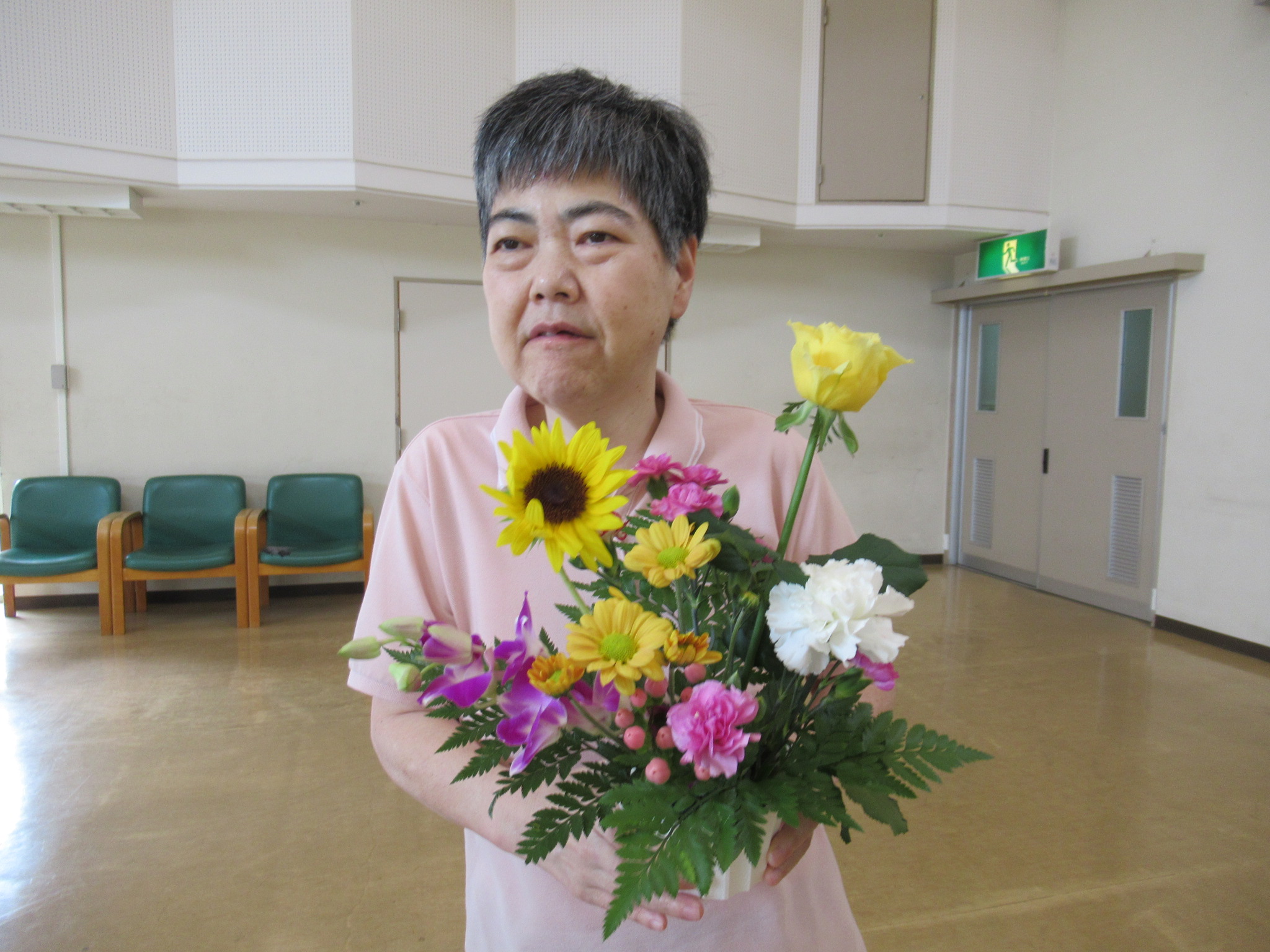 敬老の日が近いので、おとなりの長寿園さまにお花を届けに行きました。 皆さんに喜んでもらえて、利用者の皆さんも嬉しそうでした。 ![]() ![]() ![]() |