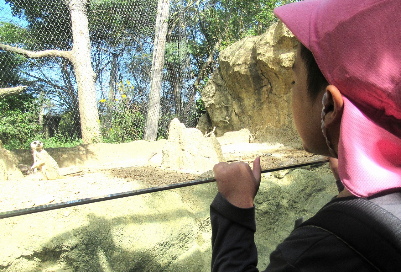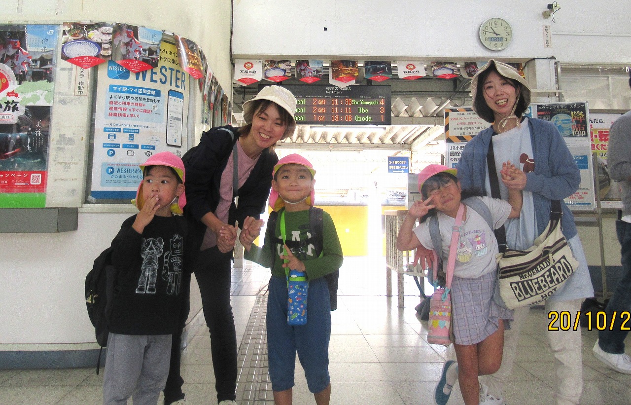 | Bグループは宇部市のときわ公園へGO! 〇電車の前で、「ハイ、チーズ☆」電車を前にして、ドキドキ、ワクワクが止まりません♪ 〇メガネのモニュメントで記念撮影!みんな、良い感じ☆ 〇「みんな、見てみて!ミーアキャットさん、見つけた♪」 ![]() |