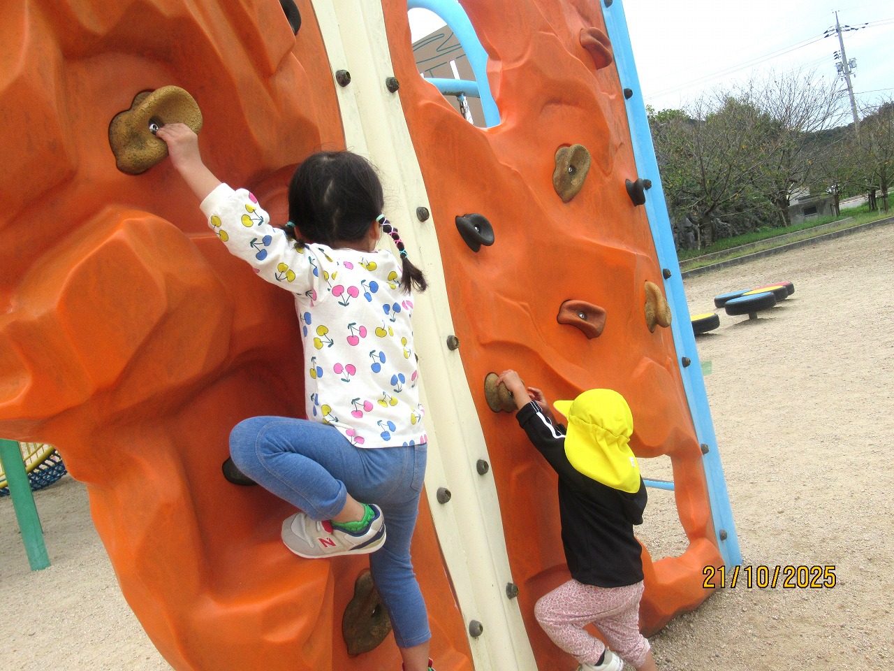 | Aグループは美祢市のさくら公園へ出発♪ 〇みんなローラーコースターがお気に入り☆何度も滑って楽しみました♪ 〇ロッククライマーは、手足をしっかり使ってのぼりました!体の動かし方が上手になっています♪ 〇スイング遊具の揺れを楽しみました☆ ![]() |