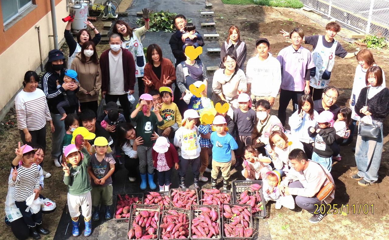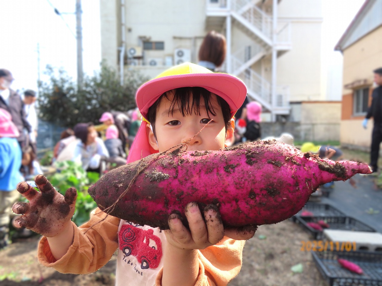 | 今年も豊作♪ ほら、こんなに大きなお芋、たくさん掘れました! 「わ〜!」「おっきいね!」嬉しそうな声がたくさん聞かれました☆ ![]() |