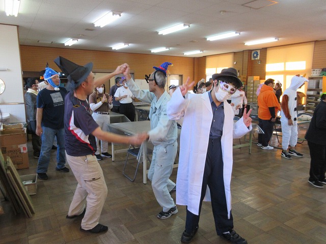 最後は再びダンスタイム。音楽に合わせて思い思いに体を動かし、最高の盛り上がりでパーティーを締めくくりました。仮装してくれた利用者さん、盛り上げてくれた3人の職員、本当にありがとうございました。 ![]() |